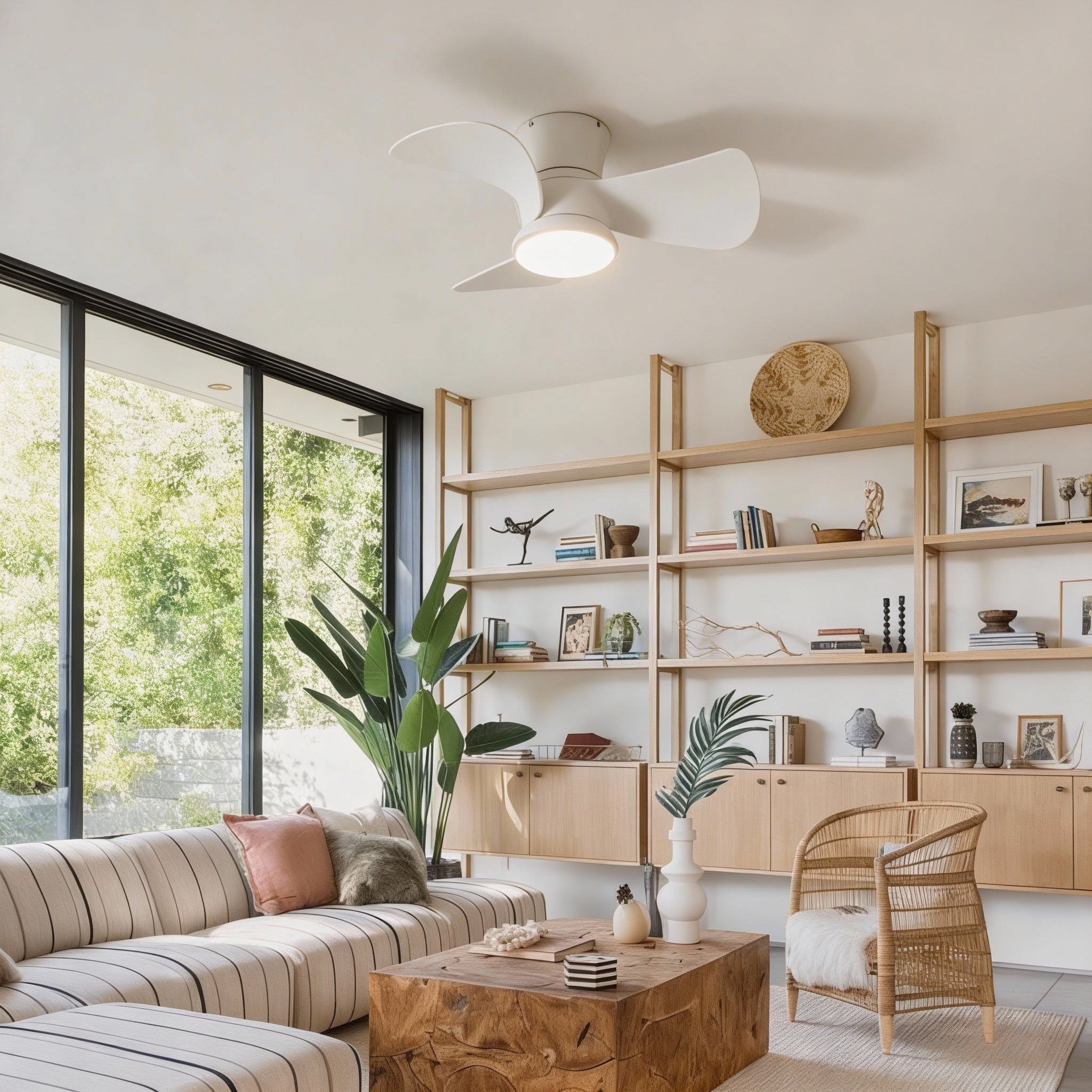 This 31-inch modern ceiling fan with light brings a clean, minimalist design with sleek lines. It features an LED light with adjustable color temperature and three-speed settings, all easily controlled via remote. The stylish white/black finish makes it perfect for dry interiors and an ideal addition to bedrooms, kitchens, kids' rooms, dining areas, living rooms, dens, and offices.