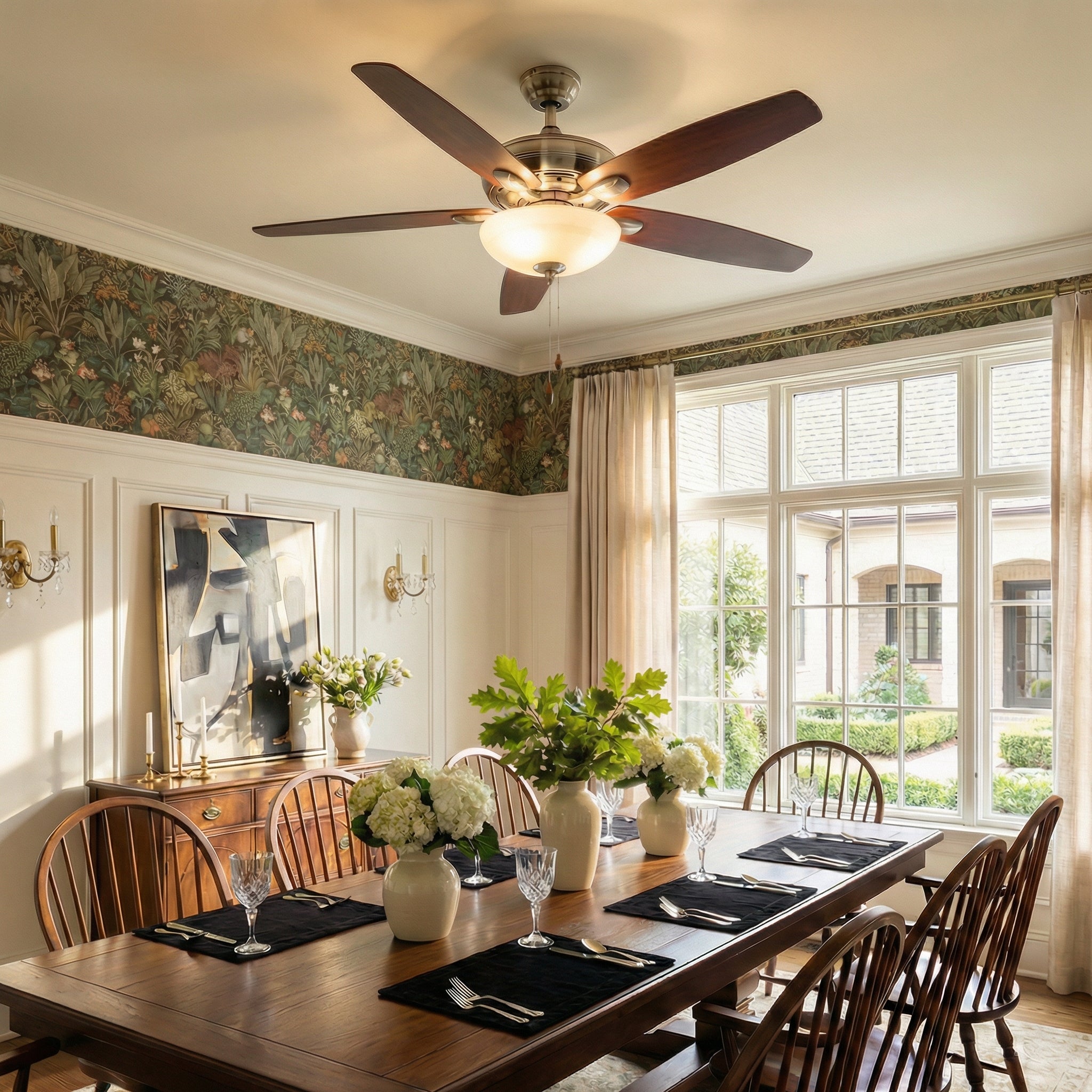 52" Traditional Pull Chain 5 Blades Downrod Flush Mount AC Motor Large Ceiling Fan with Light