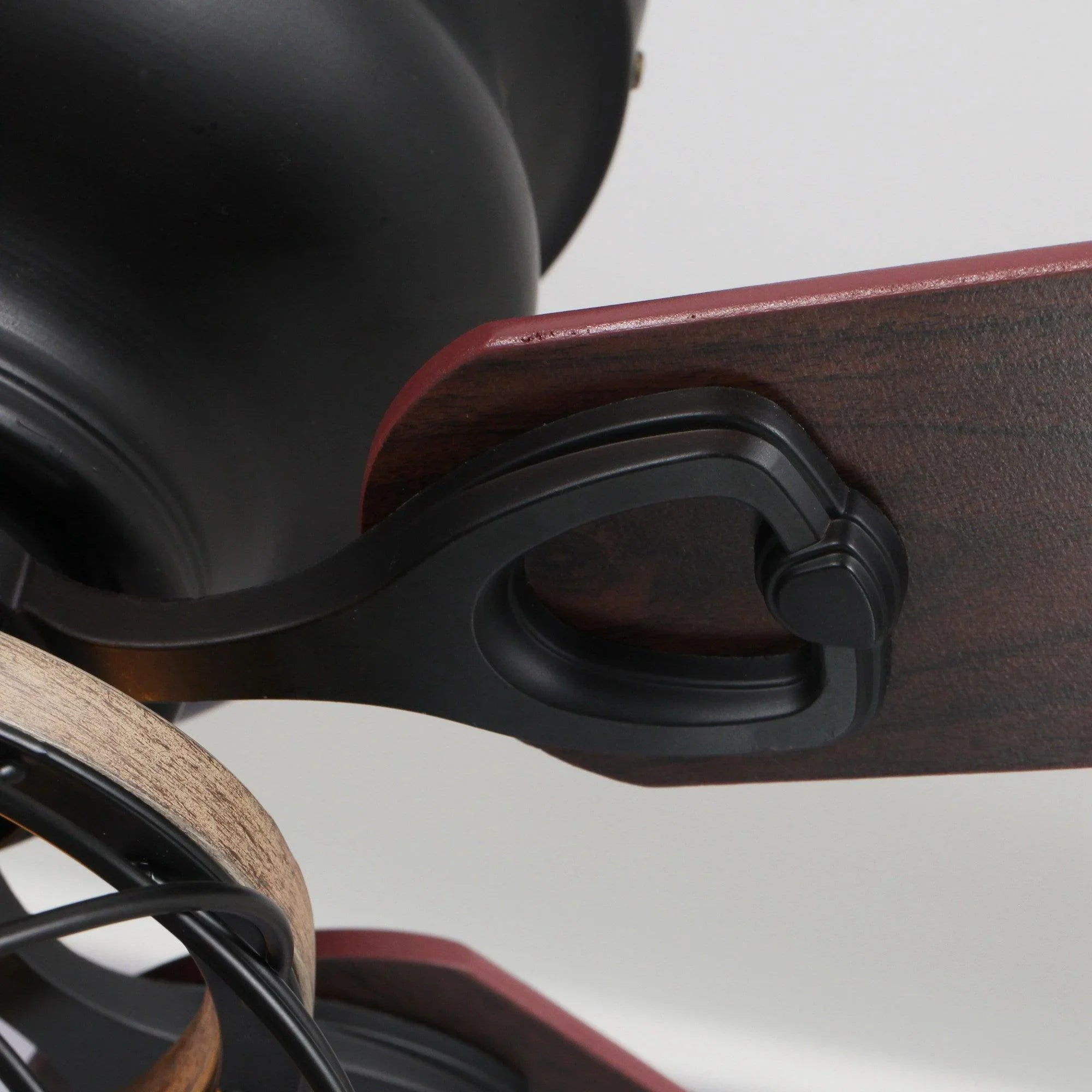 Clean, streamlined details run through the fan body, light brown wood blades, and cage bowl light kit for a cohesive look with broad appeal. With 48-inch blades and a low-profile motor housing, this fan is a perfect fit for small rooms or low ceilings.