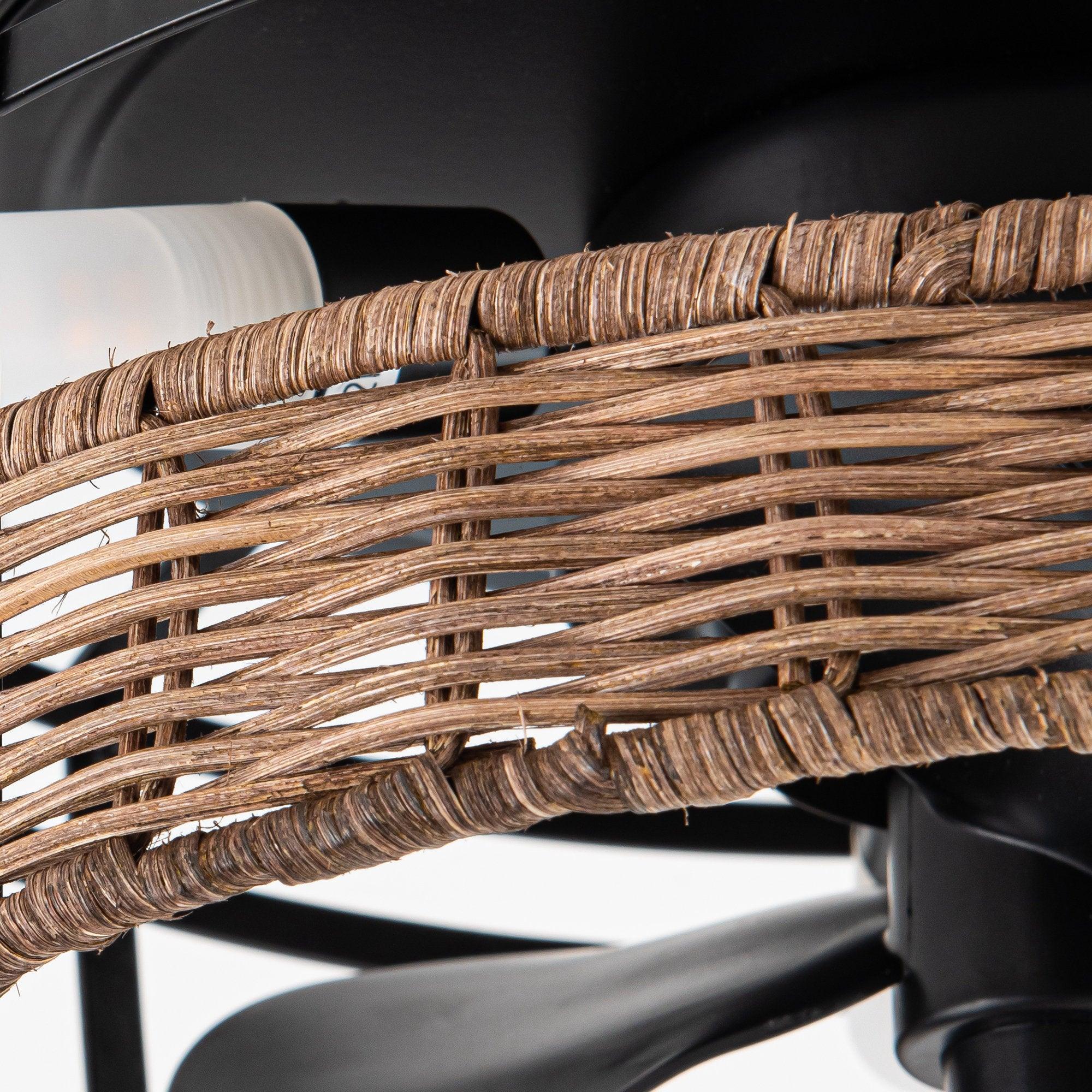 This 13" Low Profile Lighted Ceiling Fan is perfect for rooms with low ceilings or bunk beds, adding an elegant touch to your space. The brown fan frame features a hollow cage design paired with rattan weaving, combining a durable metal structure with an AC motor. Equipped with three ABS blades, this fan offers powerful airflow with three-speed settings and reversible blades to meet both summer and winter needs. The fan light includes three G9 bulb bases for extra ambient lighting (bulbs included), making it a stylish and functional addition to any room with a farmhouse vibe.