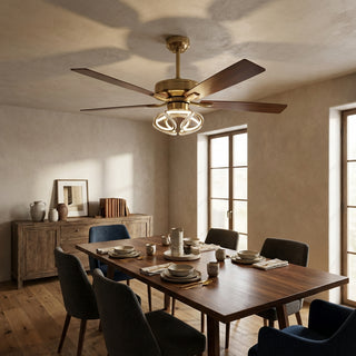 Prefer a bolder outline or want added peace of mind near bunks and hallways? Pick a gold caged ceiling fan with light. The sculptural grille adds an industrial-meets-glam note while keeping blades discreet and contained. Small entries love a compact footprint; vaulted great rooms can scale up with extended downrods. Despite the statement look, the motor stays bedroom-quiet, and frosted lenses offer flattering, diffused light. A small gold caged ceiling fan is perfect over a breakfast nook; a larger diameter brings presence to loft living.