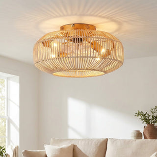 18 Inch Golden Farmhouse Rattan Flush Mount Ceiling Fan with Light APP and Remote Control