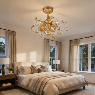 Set it and forget it. A smart gold ceiling fan with remote and app ties comfort to your schedule: create scenes for dinner, bedtime, or weekend cleaning; set 1/2/4/8-hour timers; and rely on the memory function to restore your go-to settings after a power cycle. Voice control support makes “dim to 30%” or “fan speed three” a simple ask. In tall spaces, a smart gold fan for high ceilings with downrod keeps air moving from fireplace to dining table; in compact rooms, the app gives hotel-suite convenience without leaving the couch.
