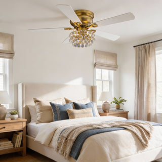 Vaczon 48" Soft Brass Crystal Ornament Flush Mount Ceiling Fan with Light and Remote Control
