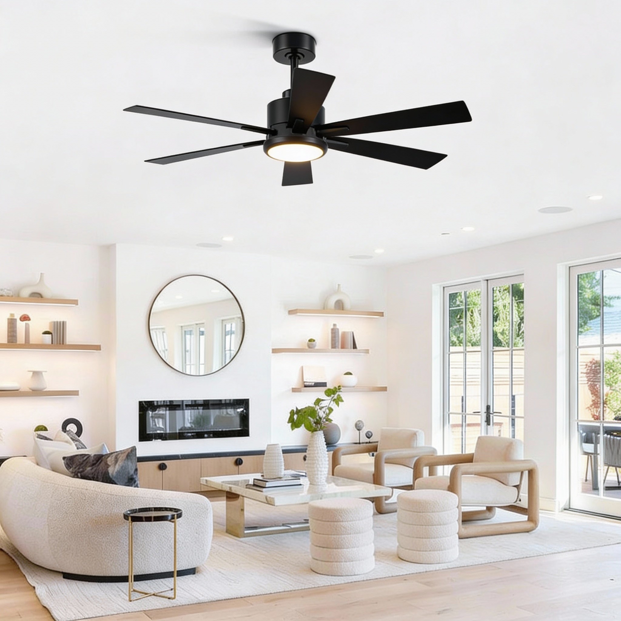 Crafted as a striking centerpiece for spacious indoor and outdoor areas, the 65" Downtown Ceiling Fan features a sleek metal finish and 6 reversible black plywood blades, blending modern-industrial style to complement any décor. Equipped with a 3-speed AC motor, an integrated 3000K LED module, and 4"/10" downrods for flexible setup, it is ETL-listed for safe use in dry locations.