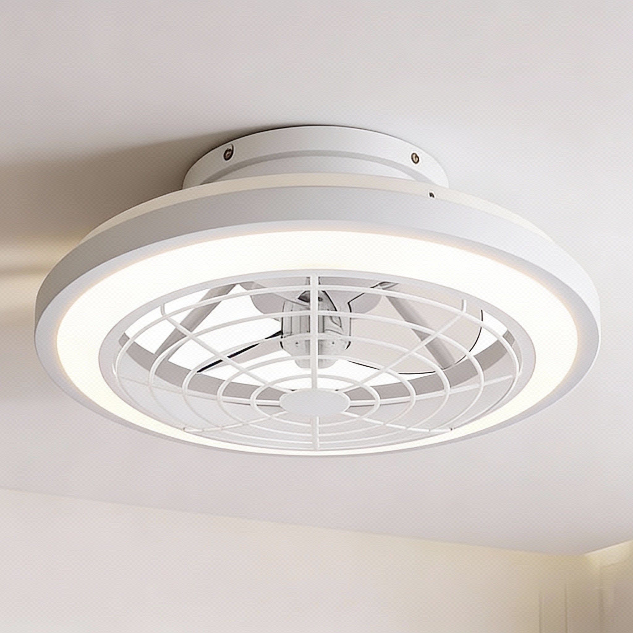 The Ikon modern-style white flush mount ceiling fan stands out with its sleek, simple lines, offering a clean and contemporary look. Its round housing features a powerful 36W integrated LED light with adjustable color temperature, letting you set the perfect ambiance for any mood. Equipped with a handheld remote, you can easily control the fan's three-speed settings for added convenience.