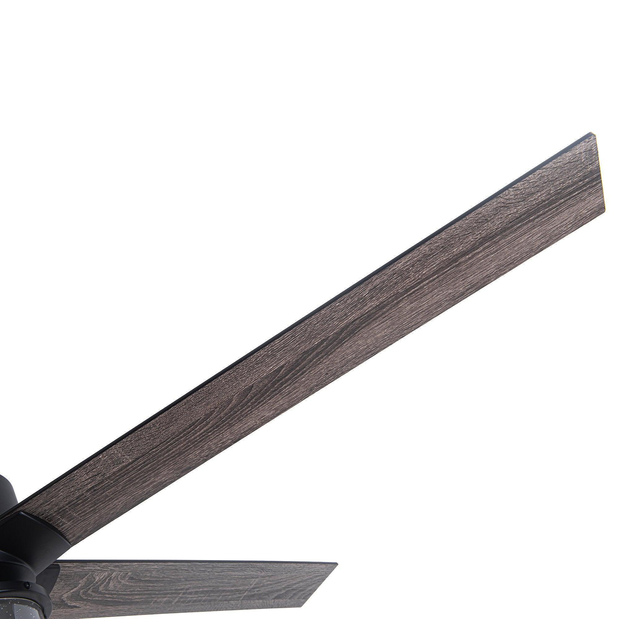 This 65" ceiling fan features five blades with a matching wooden finish, adding a contemporary feel with a rustic touch. Perfect for modern or industrial spaces, it operates quietly, and both the light and fan can function independently.
